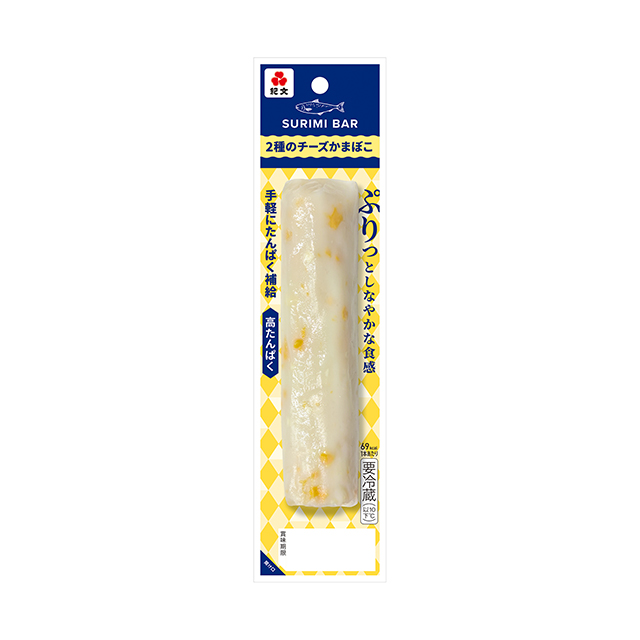 ぷりっとしなやかな食感の、2種のチーズが入ったバータイプのかまぼこです。
