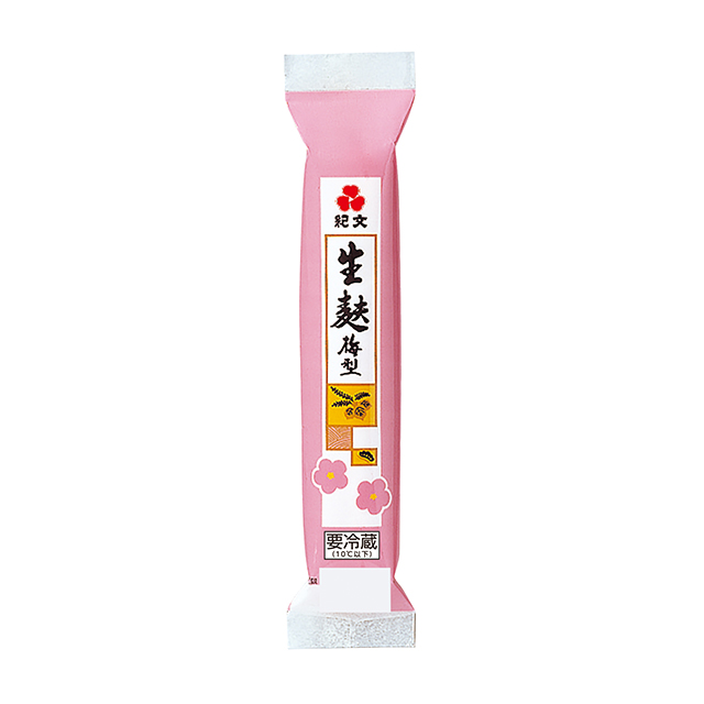 淡いピンクの花びらに黄色の花芯がかわいらしい梅型の生麸です。