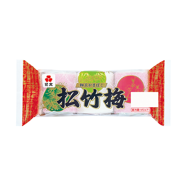お正月の食卓を演出する松、竹、梅の切り出しの蒲鉾3本セットです。