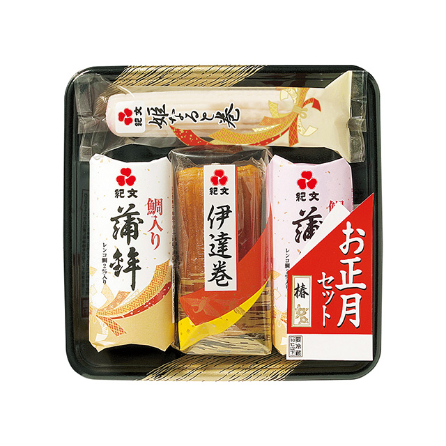定番おせちの紅白蒲鉾・伊達巻と、雑煮に欠かせないなると巻をセットしました。