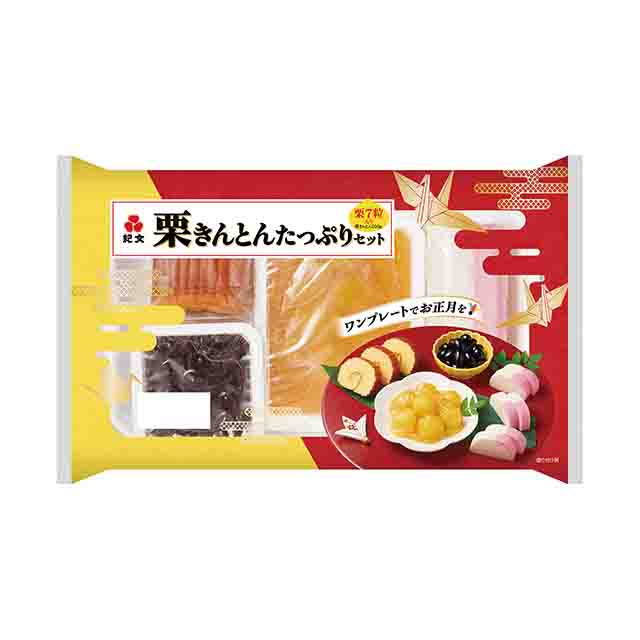 | 内容量 | 紅白かまぼこ180g・栗きんとん200g・伊達巻120g・黒豆80g(固形量50g) |