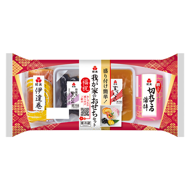 | 内容量 | 蒸しかまぼこ150g(8枚)・伊達巻150g・栗きんとん130g・黒豆70g |