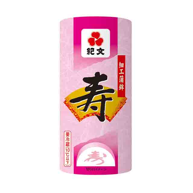 「寿」の文字をデザインした細工蒲鉾、お重の彩りにどうぞ。